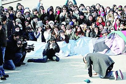 韓國時(shí)間14日下午,韓國演員孔侑在韓國某訓(xùn)練營外向歌迷跪謝道別?踪⒃谶@個(gè)訓(xùn)練營進(jìn)行為期5周的基礎(chǔ)軍事訓(xùn)練,之后將正式開始23個(gè)月的軍人生活?踪г餮荨毒实囊惶臁、《咖啡王子1號店》、《S日記》、《潛伏任務(wù)》等劇,被粉絲昵稱為“咖啡王子”。 小韓