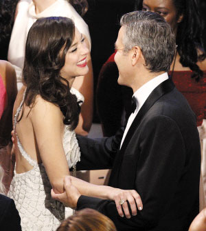 喬治·克魯尼真是越老越頑皮,雖然在強(qiáng)敵劉易斯的壓制之下無(wú)緣影帝,但紅地毯上的他不僅與女友莎拉·拉爾森大秀恩愛(ài),臺(tái)下又熱情地與凱特·布蘭切特寒暄,向新鮮出爐的最佳男配角賈維爾、最佳女配角蒂爾達(dá)、最佳女主角瑪麗昂、最佳男主角劉易斯等人表示祝賀,莫非他真是見(jiàn)誰(shuí)都熟,人見(jiàn)人愛(ài)車見(jiàn)車載?