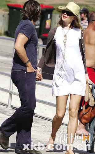 圖文:妮可·基德曼和丈夫漫步沙灘 孕味十足