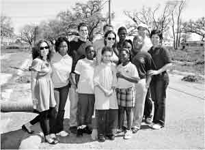 “茱皮”常以模范愛心情侶形象亮相,而且在慈善領(lǐng)域上各有專攻,茱麗較多為第三世界貧苦國家代言,而皮特則專注于國內(nèi)颶風(fēng)過后新奧爾良城的重建。圖為“茱皮”與新奧爾良居民合影。