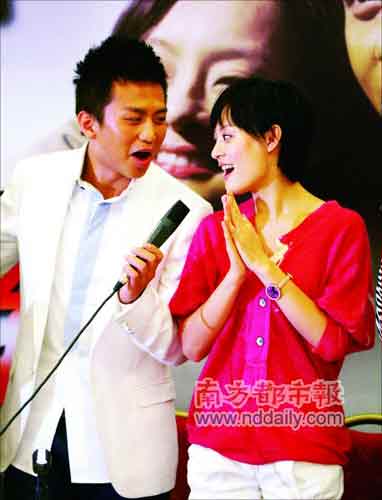 正在熱戀中的孫儷和鄧超前日齊齊亮相北京,為兩人攜手主演的電視劇《甜蜜蜜》在當(dāng)?shù)亻_播造勢。發(fā)布會(huì)上,兩人不時(shí)眉目傳情、親昵耳語,更搭肩合唱《甜蜜蜜》。孫儷還昵稱鄧超為“小綿羊”,現(xiàn)場大秀恩愛,毫不避嫌。
