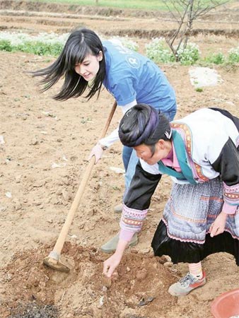 中新網(wǎng)4月8日電 周慧敏(Vivian)早前以“樂施會中國發(fā)展基金”樂施大使身分,到云南祿勸縣農(nóng)村展開首個內(nèi)地扶貧之旅,探訪當?shù)卮迕窦绑w驗他們的生活情況,一起吃農(nóng)家飯、學習蠟染及繡花、耕種等。周慧敏希望將來有機會與男友倪震結伴探訪,一同感受,但首要條件是找到可靠的人照顧家中愛貓。