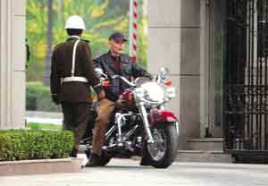 日前某天下午記者看見葛優(yōu)騎著一輛嶄新的國產(chǎn)某品牌大型摩托車駛出別墅大門,他穿著休閑夾克,戴著一頂棒球帽,端坐車上,滿臉含笑,經(jīng)過大門時(shí)還主動(dòng)朝保安點(diǎn)頭,看上去心情超爽,一出別墅大門,葛優(yōu)便加大油門,繞著別墅疾馳起來,他姿態(tài)瀟灑,動(dòng)作嫻熟,仿佛是一位正在前去參加“方程式”比賽的摩托騎手。幾分鐘后,葛優(yōu)結(jié)束了這次短暫的兜風(fēng),帶著煥發(fā)出的一種少有的活力返回別墅。卓 偉