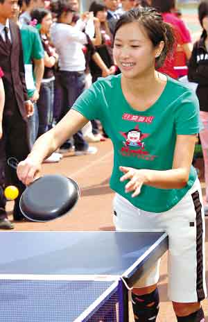 為了給自己的電子雜志《開(kāi)啦》慶!耙恢軞q”生日,徐靜蕾前日召集顧長(zhǎng)衛(wèi)、張揚(yáng)以及霍思燕等圈內(nèi)好友在其母校舉行了一場(chǎng)“明星春季運(yùn)動(dòng)會(huì)”。親自擔(dān)任運(yùn)動(dòng)會(huì)總裁判的徐靜蕾,還親自參加了拔河、垃圾障礙跑等項(xiàng)目,并用煎雞蛋的平底鍋大秀乒乓球技,最終獲得乒乓球雙打的冠軍,十分活躍。