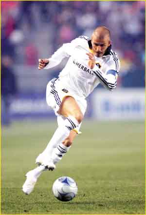 上周周末,洛杉磯銀河隊(duì)主場(chǎng)5:2大勝了美國(guó)芝華士隊(duì),身為貝克漢姆的好朋友,湯姆·克魯斯帶著他15歲的女兒伊莎貝拉和13歲的兒子科納到體育場(chǎng),為小貝所在的銀河隊(duì)加油助威,看臺(tái)上靚佬湯看得眉飛色舞,球場(chǎng)上小貝踢得英勇異常。