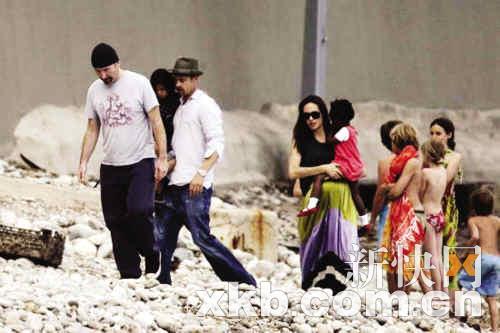 法國當(dāng)?shù)貢r間5月4日,布拉德·皮特、安吉麗娜·朱莉攜養(yǎng)子馬多克斯、派克斯和養(yǎng)女扎哈拉在法國南部艾茲海邊散步,被當(dāng)?shù)鼐用窈推渌慰驼J出。盡管因有保鏢在旁,沒人敢輕易上前實行“騷擾”,但一道道如炬的“注目禮”仍然讓皮特、朱莉感到很不自在。所幸沒走幾步,海邊已鮮有外人,他們這才自在地開始陪孩子們玩耍。