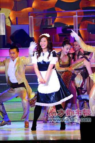 隨著胡楓一聲大喊:“歡迎光臨麗花皇宮,”恍惚又回到了當(dāng)年肥姐的麗花皇宮時代。劉雅麗、陳潔靈開始大秀歌舞,一身女傭打扮的欣宜則作為招待在招呼客人,看到別人載歌載舞心癢癢,于是跳出來主動要求表演,結(jié)果還穿著女傭服裝的她又唱又跳了一曲《我要》,贏得眾人的掌聲。接下來,欣宜又換上黑色連身裙唱了一曲《IWILLFOLLOWHIM》以及《勁草嬌花》,引得不少觀眾在座位上大叫“欣宜,欣宜”。
