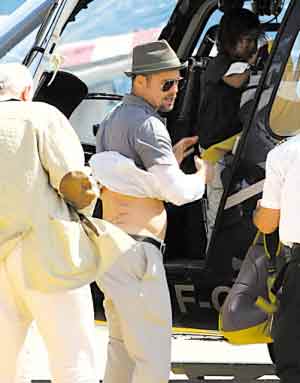 布拉德·皮特露肚腩秀刺青 圖案似堤防系統(tǒng)(圖)