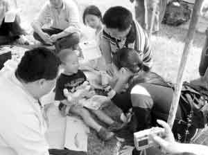 18日蔣勤勤隨全國婦聯(lián)“母愛在行動”特別行動小組抵達四川重災(zāi)區(qū)綿竹,把從北京帶來的價值10萬元的奶粉親自送到了災(zāi)區(qū)母親和孩子們手上,在臨時搭建的簡易帳篷里,蔣勤勤跟地震中失去雙親的孩子們玩耍、聊天,她說,孩子們要比她想象中的堅強,希望能有更多的人關(guān)心這些受災(zāi)母親和兒童。