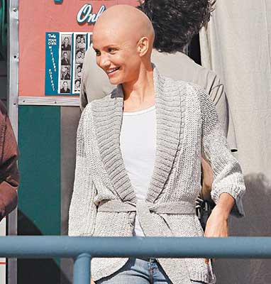 中新網(wǎng)5月23日電 臺(tái)灣媒體報(bào)道,好萊塢女星卡梅隆·迪亞茲(Cameron Diaz)光頭造型亮相。她為暢銷書改編的新片《姊姊的守護(hù)者》(My Sisters Keeper)犧牲色相,戴上頭套扮光頭,被媒體嘲笑很像12年前的電影《星戰(zhàn)毀滅者》(Mars Attacks!)中的火星人。