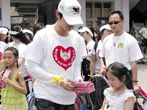 5月16日,在“5·12地震”發(fā)生的第四天,黃曉明帶著醫(yī)療和救援志愿隊(duì)趕到受災(zāi)最嚴(yán)重的遵道鎮(zhèn)、漢旺鎮(zhèn)和死傷人數(shù)最為慘重的東方汽輪廠等地,以一名普通志愿者的身份默默幫忙。昨天,在兒童節(jié)這一天,黃曉明又親自率領(lǐng)自己的愛心基金會(huì)成員們,二度進(jìn)入重災(zāi)區(qū)綿陽(yáng)安縣的數(shù)所小學(xué),給孩子們帶去急缺的生活學(xué)習(xí)用品。本報(bào)記者昨天也全程陪同,見證了這位將慈善視之“習(xí)慣”的明星的真性情一面。