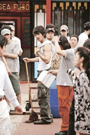 據(jù)香港《明報(bào)》報(bào)道,由于韓劇《伊甸之東》劇組要保持劇集內(nèi)容的神秘,故記者采訪時(shí)要保持遠(yuǎn)距離。不過(guò)現(xiàn)場(chǎng)得見(jiàn),宋承憲的“掃地”裝扮也有型過(guò)人,白色背心與軍褲,展示健碩身形。而跟他有對(duì)手戲的Zoie也被其電眼電暈,不敢與他對(duì)望。