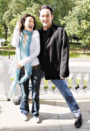 一身休閑裝扮的鞏俐(左)顯得優(yōu)雅又有活力,開懷大笑的她在約翰·庫薩克身邊可謂風(fēng)情萬種.