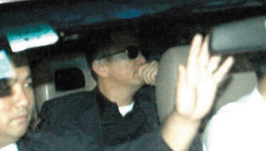 王家衛(wèi)快抵達(dá)時(shí),在車?yán)锩撓履R,真是少見。