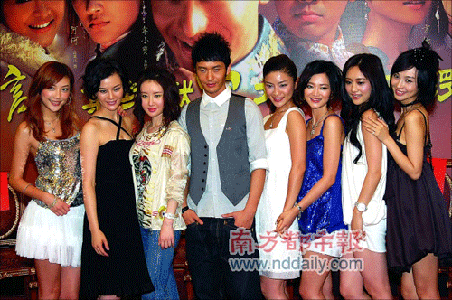 繼在廣東等地開(kāi)播后,昨天下午,《鹿鼎記》又在北京舉行了盛大的開(kāi)播會(huì)。張紀(jì)中率黃曉明和他的七個(gè)老婆劉孜、應(yīng)采兒、胡可等齊齊亮相,7個(gè)美女濃妝艷抹一個(gè)比一個(gè)性感,并且在應(yīng)采兒帶頭下現(xiàn)場(chǎng)大肆“調(diào)戲”黃曉明,大大搶走黃曉明的風(fēng)頭。而前幾次宣傳都未露面的鐘漢良也專程趕到北京造勢(shì),鐘漢良也面對(duì)7個(gè)美女的伶牙俐齒也更顯言辭笨拙,只好與黃曉明兩人相視苦笑,黃曉明最后不得不大嘆“還是一夫一妻制好!”