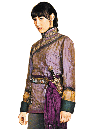 這次李連杰扮演的龍帝(右圖),令人聯(lián)想起中國(guó)古代暴君秦始皇。他渴望長(zhǎng)生不老,而楊紫瓊演的女巫則擁有不死天書,李連杰不但達(dá)成長(zhǎng)生不老的愿望,還想占有她,可楊紫瓊卻愛上了羅素扮演的將軍,并生下梁洛施,李連杰遂將羅素五馬分尸,悲慟的楊紫瓊遂向李連杰施咒變兵馬俑。而梁洛施在戲中是已活了2000年的美少女,戲份貫穿始終,比楊紫瓊更搶鏡。