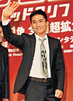 中新網(wǎng)8月7日電 上月21日與女友劉嘉玲在不丹完婚的梁朝偉(偉仔),昨日在東京六本木正式復(fù)工,與導(dǎo)演吳宇森、金城武和林志玲等在日本宣傳電影《赤壁》。偉仔獲臺(tái)下近500名記者鼓掌恭賀新婚,電影也正式宣布成為10月18日舉行的第21屆東京國(guó)際電影節(jié)目開(kāi)幕電影。