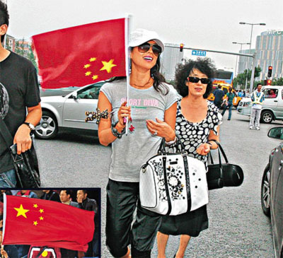 據(jù)香港媒體報道,昨日郭晶晶與吳敏霞成功奪金后,章子怡于下午約4時與母親離開水立方,心情興奮的她不停揮動中國國旗,但細看之下,她拿得竟是“倒裝”的國旗。想必是看到中國隊員再奪金,興高采烈地子怡并未留心此烏龍事件。