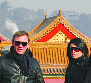 去年,“007”扮演者丹尼爾·克雷格(左)與女友(右)來到北京,一起游覽了各大風(fēng)景區(qū)。