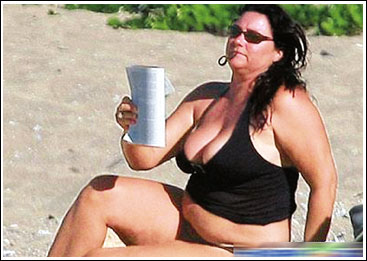 布魯斯南版的“詹姆斯·邦德”向來身邊靚女如云,但現(xiàn)實(shí)生活中,這位英國紳士只愛妻子——130公斤的肥婆姬麗·史密斯。54歲的布魯斯南于2001年迎娶了比他小10歲的第二任太太姬麗,但在為丈夫先后生下兩個兒子后,專心相夫教子的她身材走樣兒,到了海濱度假總被媒體驚呼“鯨魚擱淺”,但這全然不會動搖她在布魯斯南心里的地位。上周在hawaii海灘,除了和老婆橫抱在一起旁若無人的熱吻以外,騎在一棵倒下的樹樁上看劇本的布魯斯南,還不時對著妻子做鬼臉只為博芳顏一笑。