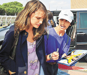 剛抵達(dá)就遇到索取簽名的影迷,波特曼很不耐煩。