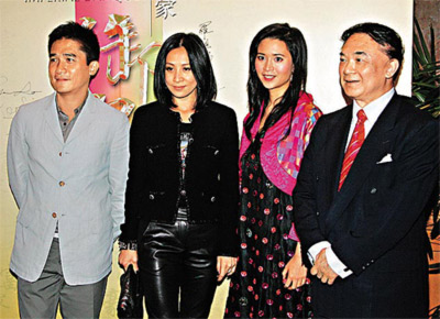羅旭瑞(右一)和女兒羅寶文(右二)殷勤接待梁朝偉、劉嘉玲夫婦。
