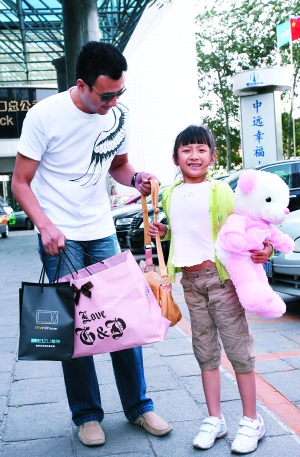 “爸爸年底就給你添個(gè)伴兒。ㄔO(shè)計(jì)臺(tái)詞)”今年5月胡軍帶著女兒看望從地震災(zāi)區(qū)送到北京醫(yī)治的孩子。玄反影 攝