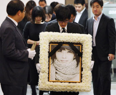中新網(wǎng)10月6日電 本月2日以自殺結(jié)束生命的韓國藝人崔真實遺體告別儀式4日在親友們的眼淚中莊嚴舉行。