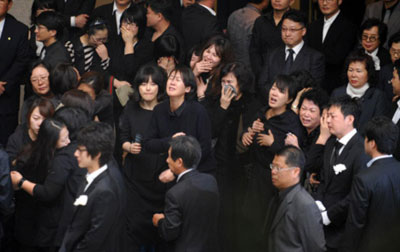 崔真實的母親和手捧姐姐遺像的弟弟崔振英淚流滿面,她生前好友李英子、嚴貞花、洪真慶、鄭善姬、辛愛等朋友和前夫趙成珉也以眼淚送別了故人。