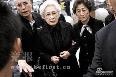 大廳內(nèi)的墻上掛著謝導(dǎo)的遺像,謝晉的遺體邊遍布鮮花,老人戴著眼鏡,就好像睡著了一般,旁邊還放著他最鐘愛的一頂帽子。一點(diǎn)十分左右,謝晉妻子徐大雯和其小兒子阿四到達(dá)追悼會(huì)現(xiàn)場(chǎng),強(qiáng)掩住內(nèi)心的悲傷,送謝導(dǎo)最后一程。這幾天,徐大雯堅(jiān)持從醫(yī)院出來(lái),親自參與布置靈堂,盡管她剛剛安裝了心臟起搏器,精神狀態(tài)很不好。徐大雯這些天說得最多話是:“我不能倒,這個(gè)家總得有一個(gè)人撐著!弊蛉,一直表現(xiàn)堅(jiān)強(qiáng)的徐大雯顯得非常憔悴,頭發(fā)花白,走路蹣跚,對(duì)著謝晉的遺體說了不少話。