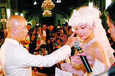 兩點(diǎn)四十左右,婚禮正式開始。在牧師的主持下,張衛(wèi)健和張茜交換了戒指,并分別向?qū)Ψ叫膶⒁簧皇缾壑鴮Ψ,“這個(gè)戒指代表了我對你的愛和忠貞。”此時(shí),一直在教堂觀禮的雙方親朋好友爆發(fā)出了歡呼聲和掌聲,而兩位新人也是激動(dòng)非常,張茜更是激動(dòng)得流下了幸福的淚水。在親朋好友和媒體的見證下,張衛(wèi)健對張茜深情一吻,并雙雙簽署結(jié)婚證書。