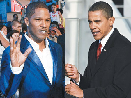 中新網(wǎng)1月23日電 據(jù)臺(tái)灣“聯(lián)合報(bào)”報(bào)道,美國(guó)新總統(tǒng)奧巴馬人氣發(fā)燒,就連演藝圈都拿他當(dāng)話題。奧斯卡影帝吉米·?怂箍紤]在電影中扮演奧巴馬,并在一場(chǎng)演唱會(huì)上模仿奧巴馬,似乎對(duì)扮演他胸有成竹。