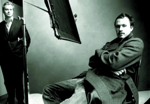 繼前兩年陸續(xù)推出《好萊塢謀殺案》、《希區(qū)柯克經(jīng)典系列》等重磅照片之后,今年《名利場》雜志又推出了2008年好萊塢熱門導(dǎo)演和演員的組合圖片集。每部熱門影片身在幕后的導(dǎo)演與主演一起出鏡,共同演繹了這些大片。該套寫真最吸引眼球的就是《黑暗騎士》導(dǎo)演克里斯托夫·諾蘭和主演希斯·萊杰的“重聚”。這張照片是整組寫真中唯一的一張黑白照,以示對萊杰的紀(jì)念。