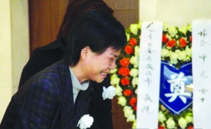 在昨天的遺體告別儀式現(xiàn)場,最悲痛的莫過葉凡的姐姐劉女士了,從葉凡病危以來,劉女士一直陪伴在妹妹身邊。心愛的妹妹這么年輕就離家人而去,劉女士一直不能接受這個現(xiàn)實?匆娒妹玫倪z體躺在冰冷的水晶棺內(nèi),劉女士不禁失聲痛哭:“你睜開眼睛看看我們大家。 痹谧返繒M行中,劉女士幾次撲倒在妹妹的水晶棺前,而當葉凡的遺體從靈堂送往火化館時,劉女士再次撲倒在水晶棺前失聲痛哭。此時葉凡的丈夫徐希壯也手捧遺像站到劉女士身邊,安慰劉女士說:“別哭了,葉凡也不希望我們這么悲傷,讓她走得開心點吧!”