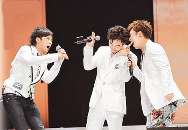 中新網(wǎng)12月3日電 年底樂(lè)壇頒獎(jiǎng)禮逼近,宿敵陳奕迅(Eason)與古巨基前晚在音樂(lè)會(huì)上演連場(chǎng)好戲!把富痹谂_(tái)上先禮后兵,但臺(tái)下即舌劍唇槍?zhuān)錆M(mǎn)火藥味。