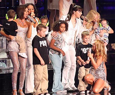 中新網(wǎng)12月20日電 “辣妹”把她們倫敦個(gè)唱最后一場(chǎng)變成了家庭聚會(huì),各成員在唱到《媽媽》(MaMa)一曲時(shí),紛紛將自己的子女領(lǐng)上舞臺(tái),場(chǎng)面溫馨不已。