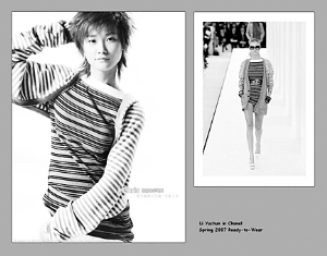 最近,“玉米”們很費(fèi)心思地做了一系列圖片,主題是他們家春春穿著各大名牌的衣服和模特的對比圖。結(jié)果我們發(fā)現(xiàn),李宇春真的能把許多衣服穿出自己的感覺,并且不僅僅是中性。想象一下李宇春穿香奈兒套裝會(huì)是什么樣子?模特走秀時(shí)穿的這系列成衣都是香奈兒家典型的纖細(xì)優(yōu)雅風(fēng),而同樣的衣服穿在李宇春身上,則多了幾分青蔥少年的特質(zhì)。看看其他的照片,我們可以發(fā)現(xiàn)除了像香奈兒和GUCCI等大牌成衣,最近幾年流行的Y-3和Comme des Gargons等潮牌也是她的最愛,除此之外還有稍微平價(jià)些的牌子,比如Diesel和Miss sixty,雖然玉米們的意思是為了證明李宇春穿得比模特好看,但是效果卻是絲毫沒有可比性,因?yàn)槔钣畲旱脑煨蛶熣娴氖怯靡路谝r托明星,而不是讓衣服穿人。