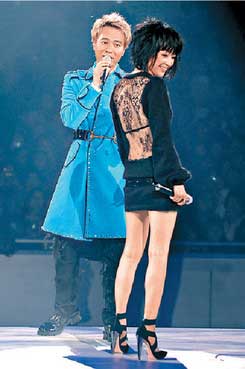 中新網(wǎng)2月15日電 李克勤于大年初二起在紅館開唱,連日來他邀請了多位嘉賓演出,包括陳慧嫻、梁詠琪及容祖兒等,慧嫻更以大露背裝出場。