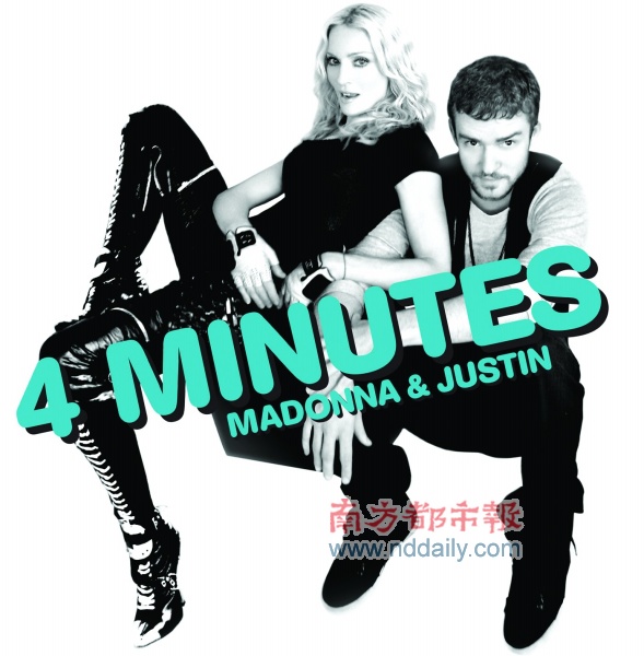 麥當娜全新單曲《4Minutes》已于昨日起全球同步首播,與此同時,唱片公司也正式公布了這張單曲碟的封面設(shè)計。因為這首歌是由麥當娜和賈斯汀合唱的作品,所以單曲碟也用了兩人的合照做封面。