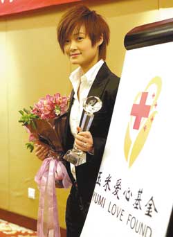 日前,中國紅基會召開“玉米愛心基金”成立兩周年暨基金標(biāo)識征集揭曉發(fā)布會。李宇春親自為愛心基金標(biāo)識的設(shè)計者、來自上海同濟大學(xué)的研究生宋頌頒發(fā)了紀念牌。(記者方芳)