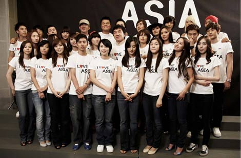 中新網5月30日電 29日上午10時30分,在首爾三成洞路易斯工作室,國際巨星成龍與韓國文體界明星合唱賑災歌曲《我愛亞洲》。到場的韓星有“冰上精靈”花樣滑冰明星金妍兒、去年歌壇的最高藍籌股Wonder Girls和憑借電影《丑女大翻身》一舉成名的影星金亞中等韓國頂級明星。