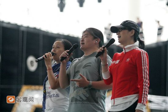 下午2點(diǎn)40分,三人同臺演唱了奧運(yùn)歌曲《同一個(gè)世界 同一個(gè)夢想》,并與領(lǐng)舞成員進(jìn)行了溝通交流。(馮紫劍)