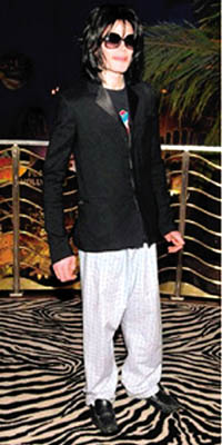 杰克遜近年飽受不利消息困擾,被指周身債之余,唱片銷量也大縮水,不過并沒有影響他慶祝50大壽的心情。上周四他現(xiàn)身賭城Planet Hollywood餐廳,與11歲兒子Prince Michael、10歲女兒Paris及6歲幼子Blanket一起吃晚飯,當(dāng)日杰克遜心情甚佳,對(duì)記者面露笑容,他坐著輪椅,全身用大披風(fēng)緊包,看來(lái)十分虛弱,而他拍照時(shí)西裝外套下露出的睡褲,格外引人注意。