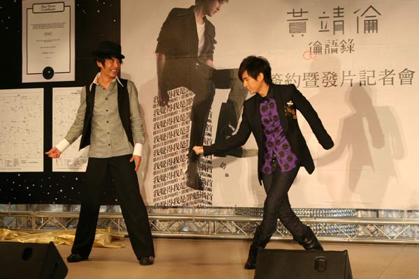 隨后記者會(huì)的重頭戲---簽約儀式正式開始,華納唱片大中華總經(jīng)理王蓓芬(帕梅拉)和黃靖倫一起走到背板的右后方,兩人一同揭開星星布幕,亮出星型的合約書,在大家的見證下簽名,代表華納唱片正式簽下這位“超級(jí)星光大道”第三屆最閃亮的一顆星,并象征黃靖倫將成為歌壇閃耀的一顆星星,希望他用簡單的歌聲打動(dòng)人心。帕梅拉大費(fèi)周張買了一顆價(jià)值1萬美金的“星星”當(dāng)做禮物送給黃靖倫,這顆特別為黃靖倫訂購的星星以黃靖倫英文名“JING”命名。收下了這個(gè)特別的禮物,黃靖倫感動(dòng)的說不出話,不敢相信自己擁有了一顆“真的星星”。 除此之外,華納音樂更是準(zhǔn)備了另一項(xiàng)大禮:當(dāng)主持人宣布?xì)g迎知名舞蹈老師張勝豐出場時(shí),黃靖倫還有點(diǎn)訝異,原來是唱片公司認(rèn)為黃靖倫會(huì)唱又很會(huì)說話,但唯一欠缺的就是肢體動(dòng)作,在他身上總是會(huì)發(fā)現(xiàn)同手同腳、舞步不在節(jié)奏上的情形。然而,既然要發(fā)片成為正式的歌手,當(dāng)然不可以忽略這個(gè)部份。張勝豐老師搞笑地拿出節(jié)拍器當(dāng)場要黃靖倫SOLO一段舞步讓老師看看,臺(tái)下歌迷也不斷鼓噪著,黃靖倫跟著老師的示范動(dòng)作做一次,果真很不協(xié)調(diào),完全不在拍子上,笑得杉哥在一旁大方宣布:“舞蹈集訓(xùn)沒有期限,讓靖倫上課上到擺脫肢障封號(hào)為止!倍旱萌珗龉笮Α