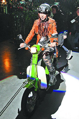 昨演唱完安可曲后,她特地戴上安全騎士帽,以皮衣造型騎機車回舞臺,由于該機車當(dāng)年由鄧麗君代言,是商家珍藏的骨董,價值約40萬元,這次特地為演唱會出借,讓她騎車時相當(dāng)小心翼翼。