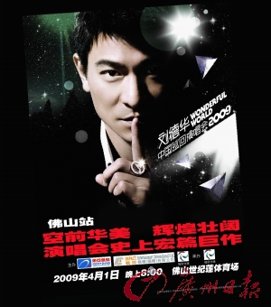 他成就了一種精神——永不言敗,他鑄就了一個(gè)榜樣——奮斗不息,他就是華人演藝圈的“勞!薄?jiǎng)⒌氯A。在2009本命年,劉德華將把 “Wonderful World(奇幻世界)”巡回演唱會(huì)帶到中國(guó)內(nèi)地,馬不停蹄地與各地樂迷分享他出道以來最豪華的演唱會(huì)。而值得廣東樂迷開心的是,劉天王將于3月20日和4月1日分別登陸廣州奧林匹克中心和佛山世紀(jì)蓮體育場(chǎng),兩場(chǎng)演唱會(huì)都可容納3萬多樂迷。