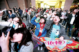 而表針指向9點10分時,MV卻沒有如期播出。正當大家都仰頭盯著天幕看時,發(fā)現(xiàn)十幾名歌迷又同時朝一個方向跑去。