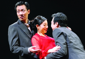 當(dāng)年,張愛玲的同名小說被關(guān)錦鵬拍成了有些壓抑的文藝片。如今的話劇舞臺上,振保辛柏青、高虎,紅玫瑰秦海璐,白玫瑰胡靜釩用幽默的臺詞和肢體表演,令觀眾感受到喜劇色彩。比如,振保在猶豫著要不要去勾引紅玫瑰時,內(nèi)心掙扎著,辛柏青說:“我要是去了,她會覺得我不是個上等男人!备呋s說:“你要是不去,她會覺得你不是個男人!”劇中有的橋段,甚至調(diào)侃起張愛玲來。白玫瑰拿著一本書說:“‘到男人心里去的路通過胃,到女人心里去的路通過陰道’,這是張愛玲說的!”更絕的是,張愛玲小說中的文字竟成了劇中振保與紅玫瑰在9年之后再次見面的“串詞”。