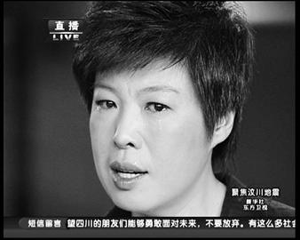 東方衛(wèi)視請于丹做節(jié)目時,她在直播中幾次哭泣。她說:“因?yàn)槲沂菫槿烁改刚,失去孩子等于失去了一切。我記得?dāng)時看到那些母親們手里拿著留在現(xiàn)場的書包,卻無法看到自己的孩子,他們還被埋在廢墟堆里,那時候我的眼淚就嘩啦啦地下來了!蔽以诓┛屠锸詹剡@張圖片,此時,她不是一位文化學(xué)者,她只是一位母親。