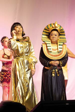 最近的流行大片海報(bào)也慘被“惡搞”,包括《赤壁》、《色,戒》等都被改頭換面,《赤壁》成了《破壁》,《見(jiàn)龍卸甲》變成《見(jiàn)紅腳甲》。曾志偉與林敏聰還換了多個(gè)搞怪造型登臺(tái),其中以埃及法老、妖后的造型最為出位。本報(bào)記者 陳明輝 攝影 阿文
